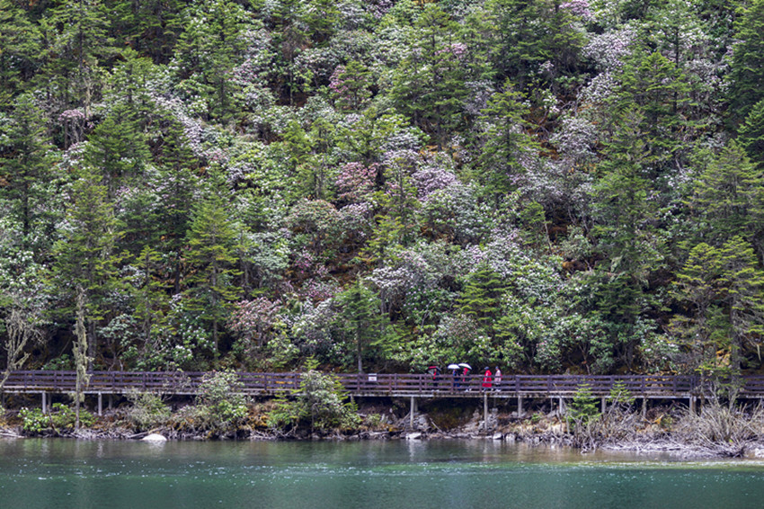 月亮湖是荷花海國(guó)家森林公園最下面的一個(gè)海子,正因?yàn)槠右挥?,也更少被人們熟知?/p>