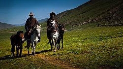 當扎溪卡草原一望無際地層現(xiàn)在面前時,相信你一定會被深深地打動。它那氣勢磅礴不事雕琢的自然美,它的質樸、純凈、蒼茫與曠漠,有一種大美不言的深沉。天空藍得透明,像一個巨大的藍色熒屏;云彩白得晶瑩,如絲如絮般輕輕飄過頭頂;清澈見底的雅礱江水蜿蜒流過開滿野花的草地,就連草原上的風都帶著一股醉人的氣息。置身其間,讓人頓感神清氣爽、心曠神怡。 即使無數(shù)次地領略過高原上日出月落的景象,但這里的日出自有其不同凡響的輝煌。當月亮漸漸淡出天幕的時候,大自然又開始了另一場更加精彩的演出:殷紅的太陽如同宇宙娩出的嬰兒,在天地被撕裂的一剎那噴薄而出,迎來了它隆重的誕生!母親幸福的臉上頓時泛起了燦爛的紅霞,把湛藍的湖水染成了酒紅,使素潔的雪山披上了盛裝,大地萬物都如受洗一般沐浴在金暉里,仿佛剛剛與太陽一同新生……