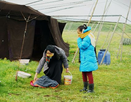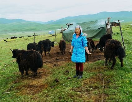 達(dá)珍和她的丈夫是我州爐霍縣宗塔草原上普通的牧民,育有一對(duì)兒女,都在縣上讀書,小兒子上小學(xué),大女兒讀初中,放暑假,11歲的女兒回到了牧場(chǎng),幫助阿爸、阿媽放牧。女兒的到來(lái),讓達(dá)珍家每一天都充滿了歡笑,7月中旬的一天,筆者來(lái)到了這里,用像機(jī)記錄了達(dá)珍的一個(gè)早晨,那是一個(gè)朝霞滿天的開始?!?郭昌平 攝影報(bào)道