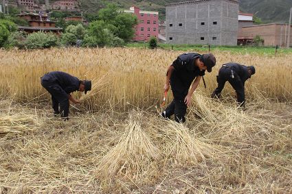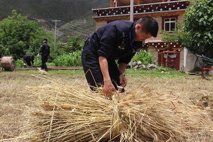 “不能讓鄧珠家成熟了的小麥爛在地里。”近期,巴塘縣陰雨天氣給當(dāng)?shù)卮迕袷崭钚←湈聿槐?。該縣夏邛派出所民警自發(fā)來到夏邛鎮(zhèn)河西村特困戶鄧珠家田地,以最快的速度幫助收割、捆綁、脫粒等一系列搶收工作。據(jù)悉,夏邛派出所民警在開展“一標(biāo)三實(shí)”工作時(shí),將當(dāng)?shù)乩щy戶、殘疾戶、五保戶等缺少勞動(dòng)力的家庭銘記在心,每逢播種秋收都會進(jìn)行幫助。