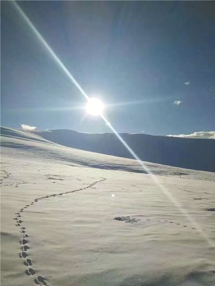 深入高山,偶然發(fā)現一路動(dòng)物經(jīng)過(guò)的痕跡,就像是追逐著(zhù)太陽(yáng)向更高更遠走去。誠然,若不是現代文明的不斷進(jìn)步,要生活在這里是不易的,因為冬雪的眷戀和不舍,讓扎溪卡在一年里就有長(cháng)達近半年的時(shí)光與雪相伴?;蛟S是因為現代科學(xué)技術(shù)克服了嚴寒,或許是因為這里有無(wú)出其右的白雪美景,或許是因為對圣潔之地的崇拜,才讓扎溪卡兒女千百年來(lái)在這里扎根,在這里生存、繁衍,不斷傳承、生生不息。
