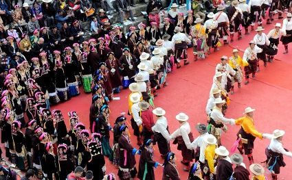 10月26日,2017中國(guó)四川丹巴嘉絨藏族鄉(xiāng)村風(fēng)情節(jié)在巴底鎮(zhèn)開(kāi)幕。本次風(fēng)情節(jié)集古碉藏寨、嘉絨選美、大型鍋莊、民族歌舞、精美服飾、農(nóng)耕體驗(yàn)以及田園觀光等為一體,既是一場(chǎng)風(fēng)情別致的民族文化盛會(huì),也是一場(chǎng)如詩(shī)如畫(huà)的鄉(xiāng)村旅游大餐。30名巴底片區(qū)(聶呷鄉(xiāng)、巴旺鄉(xiāng)、巴底鎮(zhèn))的姑娘們經(jīng)過(guò)形體和才藝展示兩個(gè)環(huán)節(jié),最后評(píng)選出金花1名,銀花2名,石榴花3名。本次活動(dòng)評(píng)選標(biāo)準(zhǔn)總分為10分,29號(hào)選手莫莫以9.85分的優(yōu)異成績(jī)榮獲本次風(fēng)情節(jié)“金花”稱(chēng)號(hào),10號(hào)選手卓瑪和6號(hào)選手孟江榮獲“銀花”稱(chēng)號(hào),28號(hào)選手扎西瑪初、16號(hào)選手仁千以及11號(hào)選手德江初榮獲“石榴花”稱(chēng)號(hào)。 丹巴嘉絨藏族風(fēng)情節(jié)歷史悠久,至少可以追溯到唐宋時(shí)期,最早是人們?yōu)榱藨c祝豐收舉行的慶?;顒?dòng),每當(dāng)夏收或秋收之后的農(nóng)閑期間,人們各自帶著釀制的新酒,聚集在一起,一邊品嘗美酒,一邊跳起鍋莊,盡情歡度豐收之后的閑暇時(shí)光,祛除一年的疲勞辛苦,久而久之便形成一種習(xí)俗沿襲下來(lái),活動(dòng)的規(guī)模越來(lái)越大,內(nèi)容也越來(lái)越豐富。活動(dòng)內(nèi)容主要包括:品嘗美酒、鍋莊舞蹈演賽、山歌情歌對(duì)唱、評(píng)選美女、民間雜耍等活動(dòng)。據(jù)了解,2017丹巴嘉絨藏族鄉(xiāng)村風(fēng)情節(jié)將持續(xù)至28日,還將在東谷鄉(xiāng)、革什扎鄉(xiāng)、梭坡鄉(xiāng)開(kāi)展一系列豐富多彩、獨(dú)具特色的民俗表演活動(dòng)。