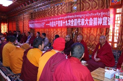 宣講團(tuán)成員勇勇用藏語(yǔ)激情洋溢的宣講黨的十九大精神,現(xiàn)場(chǎng)不斷響起熱烈的掌聲。當(dāng)勇勇講到我國(guó)五年來(lái)取得的輝煌成就時(shí),僧人們都激動(dòng)不已,紛紛為發(fā)展成就點(diǎn)贊?!奥?tīng)了今天的宣講,我進(jìn)一步了解到了我們國(guó)家這些年來(lái)取得的發(fā)展成就。一直以來(lái),黨對(duì)我們的關(guān)懷是看得見(jiàn)摸得著的,現(xiàn)在我們的寺廟管理越來(lái)越規(guī)范,基礎(chǔ)設(shè)施也得到了完善,通往寺廟的道路也有了明顯改善,我們的生活越來(lái)越好了,這一切都是共產(chǎn)黨的功勞。”寺廟僧人尺乃表達(dá)著對(duì)黨的感恩。