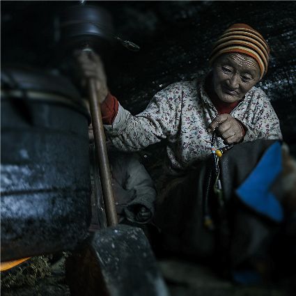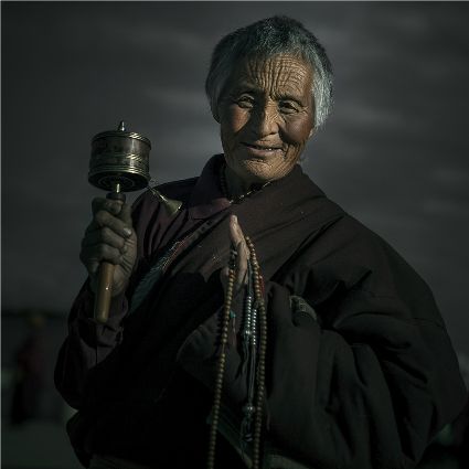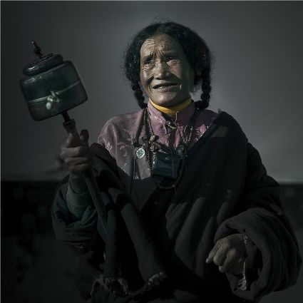 每當(dāng)我手持相機(jī)時(shí),對(duì)他們始終懷有一種敬畏,我捕捉到他們眼神里流露出虔誠。看著經(jīng)筒上“甲多”的飛轉(zhuǎn),我陶醉了,醉在那轉(zhuǎn)經(jīng)筒的旋轉(zhuǎn)舞動(dòng),醉在那轉(zhuǎn)經(jīng)筒傳誦的故事,醉在那一張張手持轉(zhuǎn)經(jīng)筒的面孔,還有,還有因祈禱音符助推而從未停止的轉(zhuǎn)經(jīng)筒……