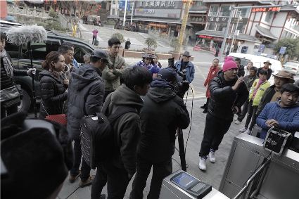 在瀘定縣城,陳軍生帶著陶琳和驢友們,站在熱鬧的紀(jì)念廣場上。劉夏正在給游客們介紹瀘定橋23烈士的雕像。在瀘定橋頭,陶琳帶領(lǐng)著游客們在橋上照相,充滿著歡快的氛圍。經(jīng)過一段時間的游覽,當(dāng)天的游覽結(jié)束了。劉夏和陶琳一起舉起牌子,叫喊著:“軍生客棧,帶您暢游牛背山、嵐安古鎮(zhèn),以及瀘定橋紅色旅游專線!”的宣傳口號,引來了許多游客。