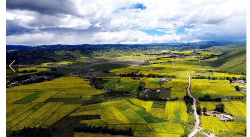 七月的川西高原是一年當中最美的季節(jié)。甘孜州雅江縣祝桑鄉(xiāng)境內(nèi)、省道303道孚縣境內(nèi),漫山遍野的油菜花,一朵朵,一簇簇,一片片,仿佛一片金色的海洋。微風拂過,綠葉上的菜花隨風搖曳,宛若千層波浪涌動。藍天白云下,金色的菜花光彩奪目,花香四溢,蜜蜂、蝴蝶在花朵上翩翩起舞,你追我趕,好一幅世外田園的高原風光,猶如一幅巨幅油畫鋪在川西大地上。