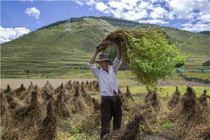 康定市姑咱鎮(zhèn)達(dá)杠村村民李翠軍一邊采摘著蘋果,一邊喜悅地告訴記者,達(dá)杠所產(chǎn)的蘋果個(gè)頭大、色澤好、吃味好、耐儲(chǔ)藏,到目前,全村蘋果種植面積800多畝,去年蘋果產(chǎn)量160萬斤,今年雨水好,蘋果產(chǎn)量將猛增到200萬斤以上。目前,村子里蘋果種植大戶家庭年收入過10萬元的就有20多戶。康定市將達(dá)杠村打造成川藏觀光農(nóng)業(yè)第一村。按照規(guī)劃,村里會(huì)進(jìn)一步擴(kuò)大蘋果種植面積,以蘋果利用為核心,發(fā)展“春賞花、夏攝影、秋摘果、冬體驗(yàn)”四季觀光農(nóng)業(yè)產(chǎn)業(yè)。五谷豐登六畜興旺,甘孜高原共慶豐收。農(nóng)民豐收節(jié),它既是億萬農(nóng)民慶豐收、曬豐收的節(jié)日,也是全社會(huì)享豐收、助增收的節(jié)日;既寄托著農(nóng)民的追求、農(nóng)民的希冀,也承載著全體中華兒女的深情與追憶;中國(guó)農(nóng)民豐收節(jié),農(nóng)牧民收獲的不只是甜蜜蜜的果實(shí),鼓起的不只是沉甸甸的荷包,更是滿滿的榮譽(yù)感、幸福感、獲得感!