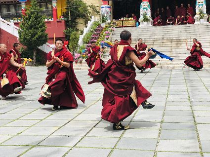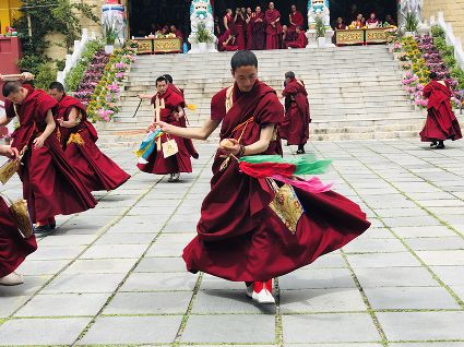 為紀(jì)念釋迦牟尼佛的誕辰(浴佛)日,康定群眾每年農(nóng)歷四月八日都要舉行隆重盛大的紀(jì)念活動(dòng),稱(chēng)“四月八”轉(zhuǎn)山會(huì),南無(wú)寺的跳神活動(dòng)就是其中之一。