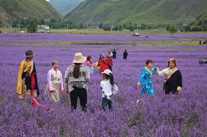 自6月中旬開(kāi)始,康定市新都橋鎮(zhèn)東俄洛二村的570多畝薰衣草花盛開(kāi),引得各地游客前來(lái)觀光旅游。各大微信公眾號(hào)、抖音短視頻平臺(tái)、微博大V紛紛發(fā)布“攝影天堂薰衣草花海絢麗綻放”的視頻、圖文信息,該景點(diǎn)儼然成為甘孜州新晉的網(wǎng)紅景區(qū)。