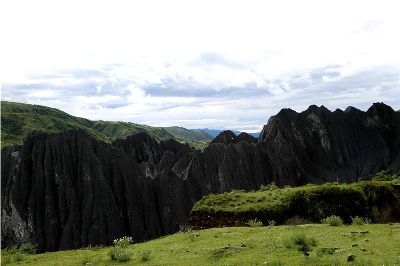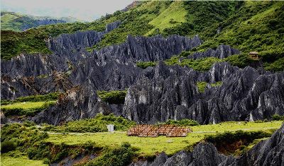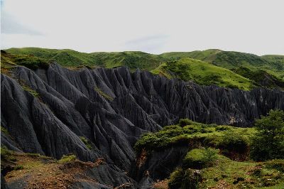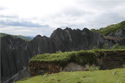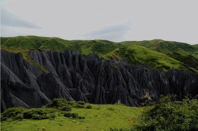 墨石公園,是中國(guó)唯一高原石林景觀,被譽(yù)為“中國(guó)最美景觀大道第八美 ”。受第四紀(jì)新構(gòu)造運(yùn)動(dòng)影響,隨著青藏高原的隆起,鮮水河斷裂帶中的巖石受到擠壓、剪切、破碎、糜化,形成糜棱巖石林。石林含丐鹽,受空氣濕度影響,干燥季節(jié)呈淺灰色、淺藍(lán)色,濕潤(rùn)季節(jié)呈滄黑色,因此又稱之為變色石林。
