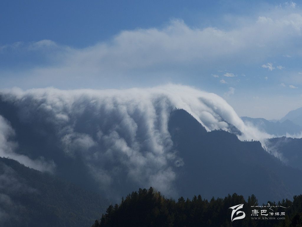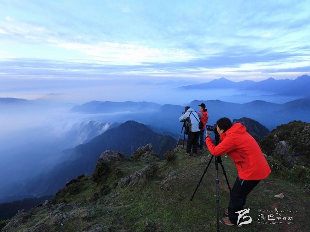 牛背山最為變幻無窮的,當(dāng)屬云海。從山頂向下望去,四周云海茫茫,時(shí)而舒緩,時(shí)而洶涌,潮起潮落。當(dāng)云海移至深谷處,會(huì)因?yàn)榫薮蟮穆洳疃纬善俨荚?,似飛瀑從天而降,氣勢(shì)磅礴,蔚為壯觀。“寵辱不驚,閑看庭前花開花落;去留無意,漫隨天外云卷云舒”。云卷云舒的景象,大概只有在牛背山才能被演繹得如此淋漓盡致吧。難怪有人這樣描述牛背山:“泥巴山、瓦屋山、峨眉山、夾金山、四姑娘山和二郎山在前, 貢嘎雪山在側(cè), 大渡河大峽谷在后, 幾乎天府之國的所有名山峻嶺在此時(shí)都變成了玲瓏盆景。而翻滾的云霧之下, 群山丘陵逐級(jí)降低, 緩緩融入稻浪翻滾的天府平原。”