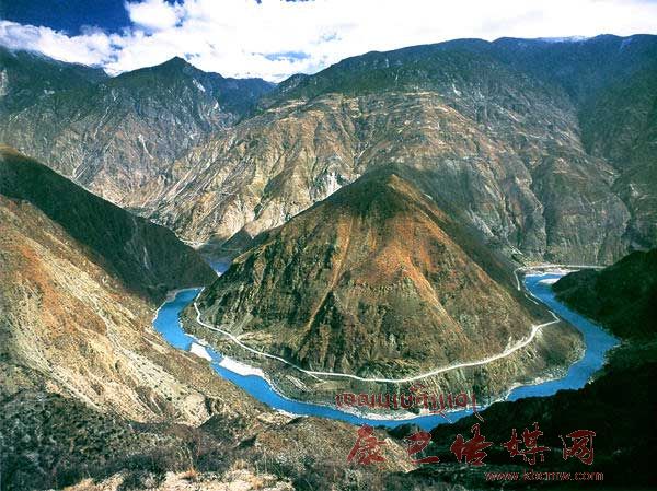 金沙江第一彎以“雄、奇、險(xiǎn)、峻著稱(chēng),位于距得榮縣城60公里處的甲學(xué)村和木擁村之間。由北向南縱貫全境的定曲河,在先后接納瑪伊河和碩曲河后,攜三河之水投入金沙江懷抱。匯水處形成了“三壁夾兩江”的奇景。穿越峽谷而來(lái)的金沙江由此水勢(shì)更加浩蕩,峽谷逐漸開(kāi)闊,在即將沖出川、滇要塞時(shí),由于高山的阻擋,拐了一個(gè)馬蹄形的大彎,流成了天下奇觀——中國(guó)四十大景觀之一的“金沙江第一彎”。從云南境內(nèi)的奔子欄,可以更完整地欣賞“金沙江第一彎”。