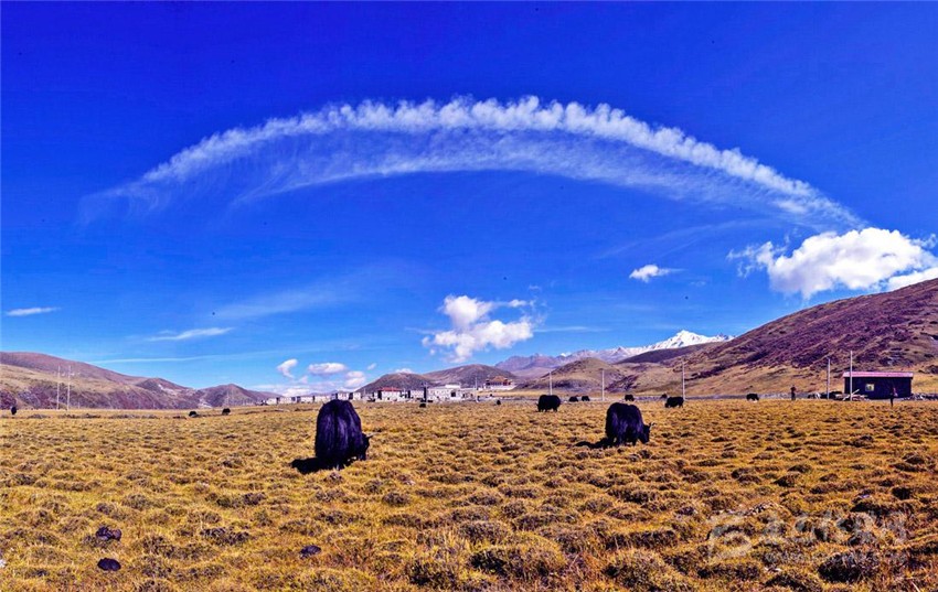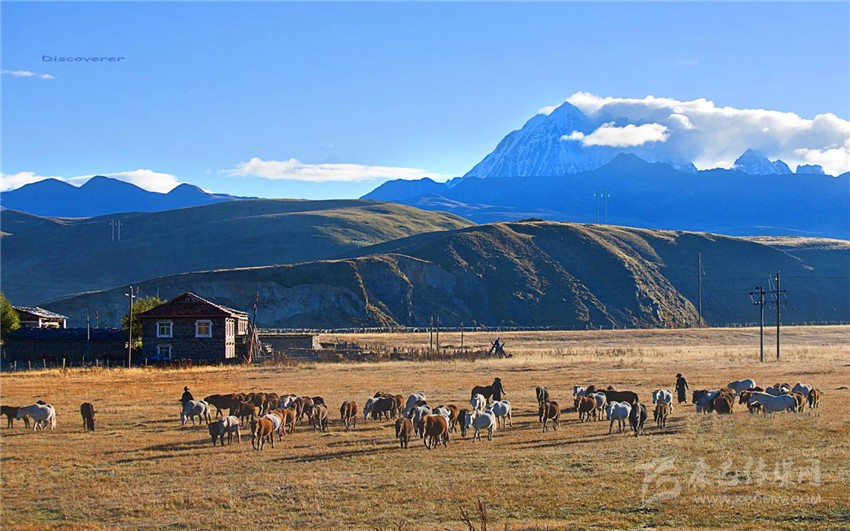 秋季的新都橋是如詩如畫的世外桃源。神奇的光線,無垠的草原,彎彎的小溪,金黃的柏楊,連綿起伏的山巒,錯落有致的藏寨,星星點點的牛羊……是令人神往的“光與影的世界”、“攝影家的天堂”。
