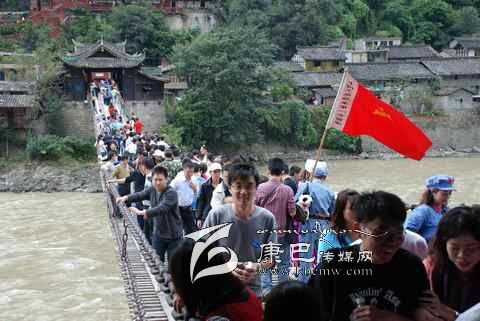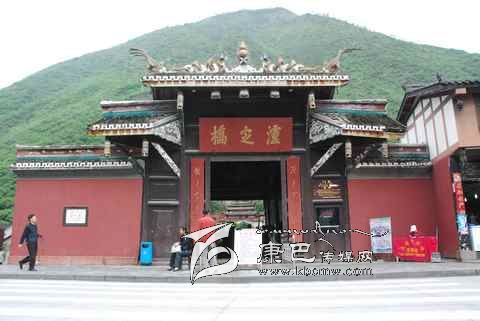瀘定橋始建于清康熙44年 (1705年),次年五月竣工,康熙御筆題名“瀘定橋”。橋身共由13根鐵鏈組成,其中底鏈九根,扶手四根。橋東西兩端各有橋臺一座,西端觀音閣下有康熙題寫之《瀘定橋》石碑,橋東有《御制瀘定橋碑記》,瀘定橋是大渡河上第一座穩(wěn)固的大鐵索橋。1935年中國工農紅軍晝夜行軍240里,英勇飛奪瀘定橋,打開了北上抗日的通道,“十三根鐵鏈托起了一個共和國”,毛澤東同志為此寫下了“大渡橋橫鐵索寒”的壯麗詩句,瀘定橋自此名揚四海,成為中國紅色第一橋。為紀念紅軍飛奪瀘定橋這一壯舉和奇跡,于1985年在沙壩建立了“紅軍飛奪瀘定橋紀念館”和紀念碑。紅軍飛奪瀘定橋紀念碑由鄧小平同志題寫碑名,聶榮臻元帥題寫碑文。紅軍飛奪瀘定橋紀念館收集了紅軍飛奪瀘定橋時用過的門板、槍、炮、紅軍的旗幟、文件箱、信件證明、標語、戰(zhàn)報、手雷、馬刀等珍貴文物110余件以及177幅歷史照片。瀘定橋是全國首批重點文物保護單位,是國家重點培育的 “紅色旅游區(qū)”、重點組織規(guī)劃的 “紅色旅游精品線路”和重點建設的 “紅色旅游經典景區(qū)”。