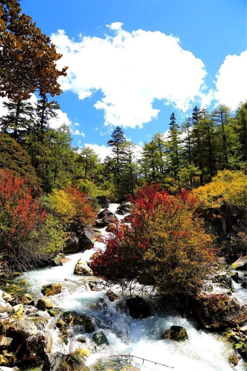 秋季的海螺溝是色彩最為豐富的季節(jié),五彩斑斕的樹林、碧綠的峽谷、滿目的冰川雪山點(diǎn)綴出一個(gè)夢(mèng)幻的童話世界,猶如女媧補(bǔ)天時(shí)的彩石掉落在凡間。