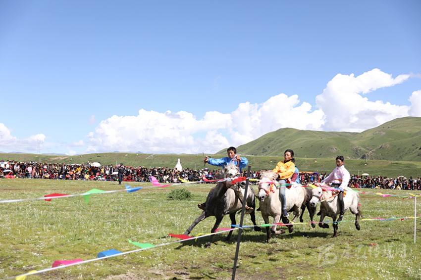 馬尼干戈鎮(zhèn)全境橫貫國道317線,是德格典型的純牧業(yè)鄉(xiāng)鎮(zhèn),轄區(qū)內(nèi)地廣人稀,草場豐富,有著十分豐富的牧俗文化,“西天瑤池”玉隆拉措也坐落于此。每年的7月底8月初舉行的賽馬節(jié),是當(dāng)?shù)刈顬槁≈氐膫鹘y(tǒng)民族節(jié)日之一。在雪域高原上綠草如茵、各類鮮花爭相斗艷的最美時節(jié),牧民們會身著華麗的藏裝,自發(fā)聚集在一片開闊的草場上,搭帳篷、唱歌跳舞,并開展賽馬、賽牦牛、賽跑和馬技表演、趣味游戲等民俗民間活動,增進(jìn)相互之間的感情,促進(jìn)鄰里和睦。