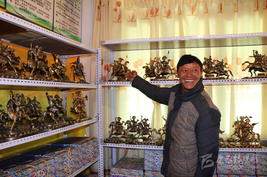 “東讓燃谷”藏文化傳統(tǒng)手工藝品制作合作社泥塑師白瑪俄日說,在精準脫貧中,茶扎鄉(xiāng)通過傳承格薩爾文化手工藝,研發(fā)了具有格薩爾文化元素的文化產(chǎn)品。
