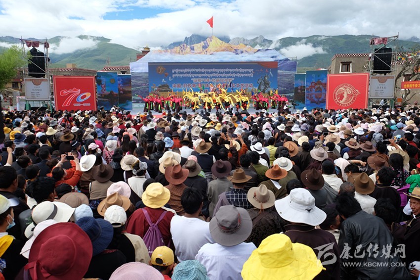 下雄鄉(xiāng)群眾表演的舞蹈《扎西鍋?zhàn)俊窞殚_幕式文藝演出拉開序篇。開幕式分為《包容甘孜·產(chǎn)業(yè)甘孜》《文化甘孜·智慧甘孜》《文明甘孜·綠色甘孜》三個(gè)篇章,來自該縣21個(gè)鄉(xiāng)鎮(zhèn)的千余名農(nóng)牧民群眾,身著盛裝、揮舞長袖、合著歡快的節(jié)拍悠揚(yáng)的旋律,歡聚于此共襄盛舉。