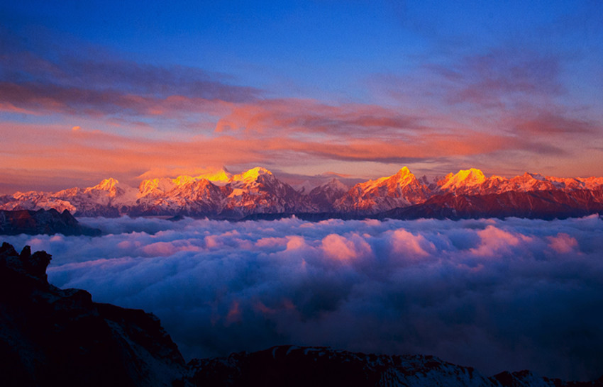 高山生態(tài)風(fēng)光游。拜謁中國離都市最近的極高山——“蜀山之王”貢嘎山,走進(jìn)冰川、溫泉、森林、紅石……領(lǐng)略超凡脫俗的“全域貢嘎”垂直景觀;登上中國最美地理階梯——二郎山景觀,東瞰天府水墨大地,西仰貢嘎金山,閱盡蜀山遺世美景。