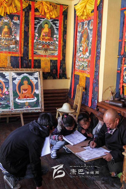 11月11日,幾個(gè)孩子在學(xué)習(xí)唐卡畫基本功。