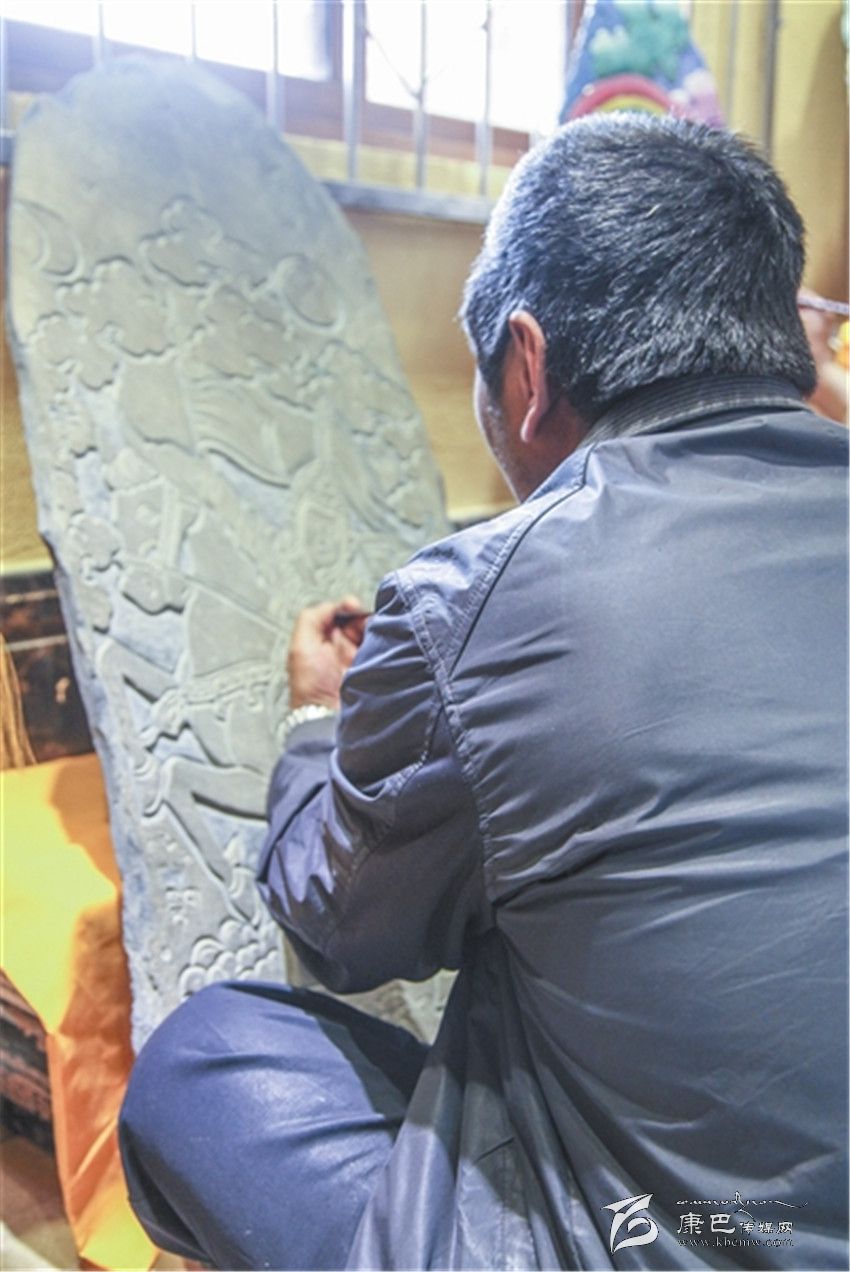 所彭告訴記者,剛開始學(xué)習(xí)石刻技藝時,就是刻一些“六字真言”之類的作品。經(jīng)歷了五、六年的磨礪后,就開始在土登老人的指點(diǎn)下,刻一些簡單的佛像作品。土登老人辭世后,所彭便擔(dān)負(fù)起傳承老人技藝的重任。從參軍再到退伍,直到今天,彩繪石刻仍然是所彭的最愛。他說,雖然自己不是非遺傳承人,但這并不重要。重要的是,他喜歡這門技藝,也樂意為格薩爾彩繪石刻傳承做些力所能及的事情。所彭說,他最遺憾的是自己的孩子中沒有一個人學(xué)習(xí)石刻技藝。但他堅(jiān)信,經(jīng)過發(fā)掘和保護(hù),會有越來越多的人行走在格薩爾彩繪石刻的傳承路上。