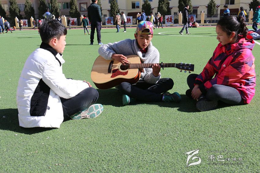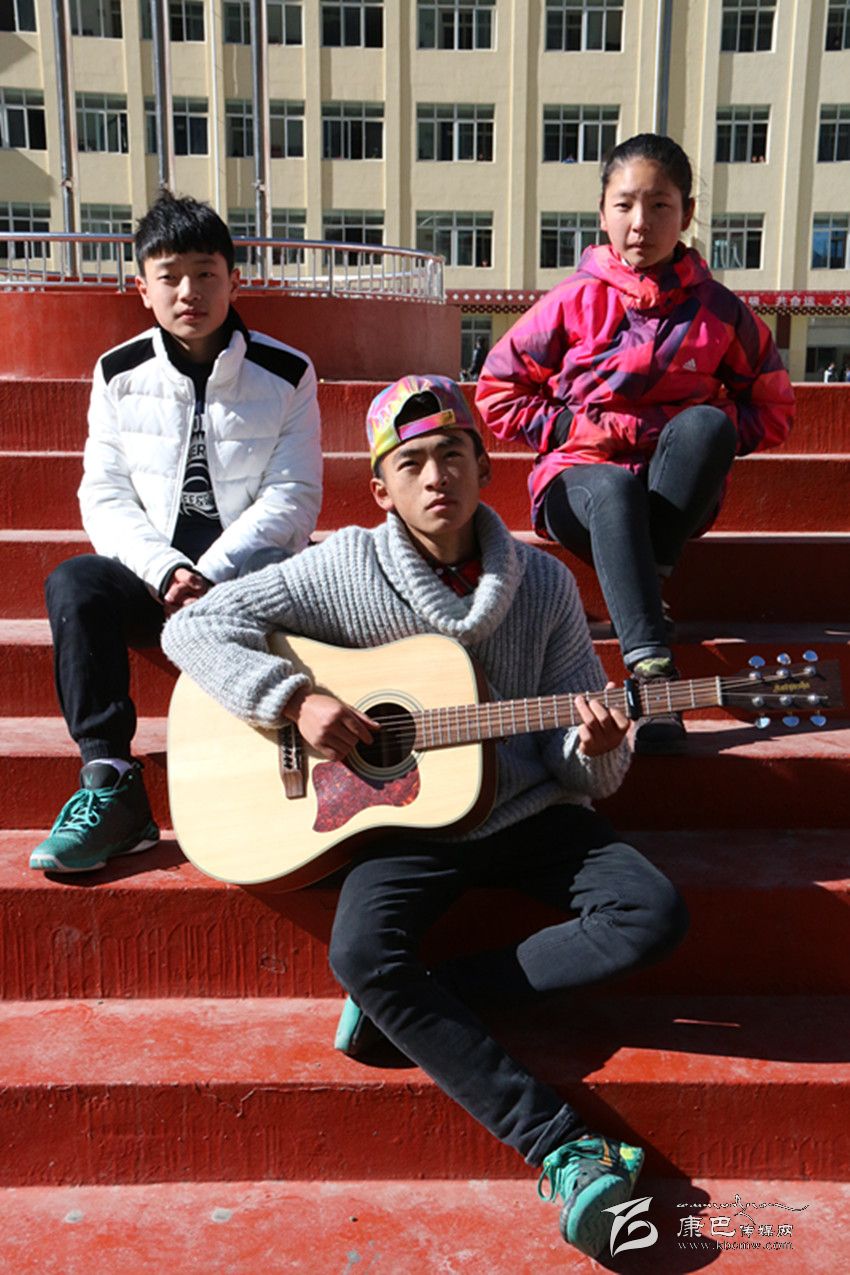 “白云下一座溜溜的城/聽著溜溜的歌聲/李家那溜溜的大姐喲/溜溜愛上藏家大哥喲/尋夢在溜溜的跑馬山/我推著金桶溜溜轉(zhuǎn)/折多河溜溜穿城過喲/頌經(jīng)聲溜溜的傳承喲/悠揚(yáng)琴聲在溜溜小城/我溜溜等待著愛人/跑馬山龍打溜溜撒喲/心就在溜溜城中活……”最近一首名叫《溜溜》的歌曲刷爆了記者的朋友圈,不到一天的時間點(diǎn)擊率達(dá)到12000多,干凈的嗓音碰上吉他、貝斯等流行元素,給聽眾帶了一種不同的音樂享受?!读锪铩返脑~曲作者周麒(當(dāng)然他也是原唱之一)和主唱昂汪央金拉姆、周楠都是來自康定中學(xué)的學(xué)生,在冬日的午后,記者在康定中學(xué)的籃球場見到了這三位一臉天真的原創(chuàng)者。初見記者,他們還有一些靦腆、緊張,但是一談到音樂,他們立刻有了說不完的話。