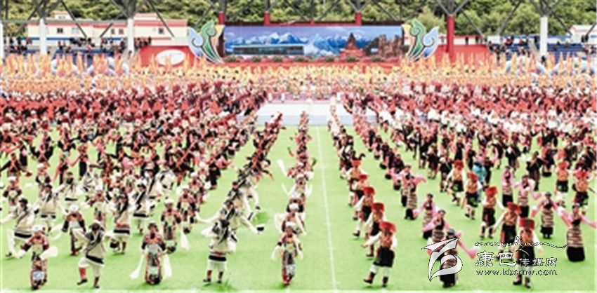 激情昂揚(yáng)的舞蹈,悅耳動(dòng)聽的歌聲,觀眾喝彩聲不斷,康定體育場(chǎng)匯聚成一片歡樂的海洋。