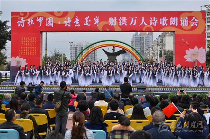據(jù)了解,本次活動是《詩刊》2016年度陳子昂詩歌獎系列活動之一,參與人數(shù)之多、規(guī)模之大,在射洪縣尚屬首次。現(xiàn)場由射洪中小學(xué)生和企事業(yè)單位組成的方陣和演出隊伍,以載歌載舞或配樂詩朗誦等形式登臺表演, 內(nèi)容以經(jīng)典詩詞為主,也有圍繞當(dāng)前中心工作而創(chuàng)作的新詩。這是文化的傳承,更是血脈的延續(xù)。參加詩歌朗誦會的最小的4歲,或許他們不懂文字背后的美,并不理解字里行間透露出的人生況味,但他們在射洪這樣的文學(xué)滋 養(yǎng)中出生、成長。
