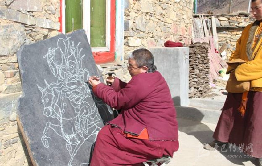 道孚縣東部的龍燈壩曾是格薩爾王征戰(zhàn)過的地方,這里以“格薩爾通”為核心的格薩爾文化世代流傳、積淀深厚,且富有質(zhì)地堅(jiān)硬、品相良好的天然頁巖。在歲月的長(zhǎng)河中,龍燈人把傳統(tǒng)繪畫、歷史傳說和石刻工藝緊密融合,創(chuàng)造了獨(dú)具特色的龍燈石刻,填補(bǔ)了格薩爾文化在藏族石刻中的空白。千百年來,龍燈人像傳承基因一樣世代傳承著這門“專屬”工藝。