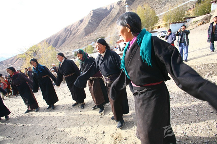 弦子又名為“協(xié)”,在甘孜縣境內(nèi)有孔薩協(xié)欽、仲薩協(xié)、格達(dá)協(xié)、郎扎協(xié)等,其中白利寺五世格達(dá)活佛創(chuàng)建于二十世紀(jì)三、四十年代的格達(dá)弦子尤為著名,跳此舞無時(shí)間規(guī)定。起初用此歌祭祀亡魂、超度靈魂、免荒災(zāi)。以后逐漸豐富其內(nèi)容而流傳于民間。表演時(shí)無伴奏樂器,起舞時(shí),男女兩隊(duì)輪歌共舞,圍成圓圈,相對(duì)而立,男女舞者統(tǒng)一著樸素藏裝,男舞者抬頭,頭戴金氈帽, 身著“氆氌”衣,但不配戴腰刀;女舞者低頭,扎小辮子,身著“氆氌”衣,腳穿藏鞋,沿著弧線,先慢后快,邊歌邊舞,舞蹈的腳步動(dòng)作矯健,帶有“夏卓”的風(fēng)韻。格達(dá)活佛的詩歌,具有藏族文學(xué)的新內(nèi)容和新思想,每當(dāng)節(jié)日人們就在優(yōu)美的旋律中盡情起舞,格達(dá)弦子的詞、曲均由格達(dá)活佛創(chuàng)作。