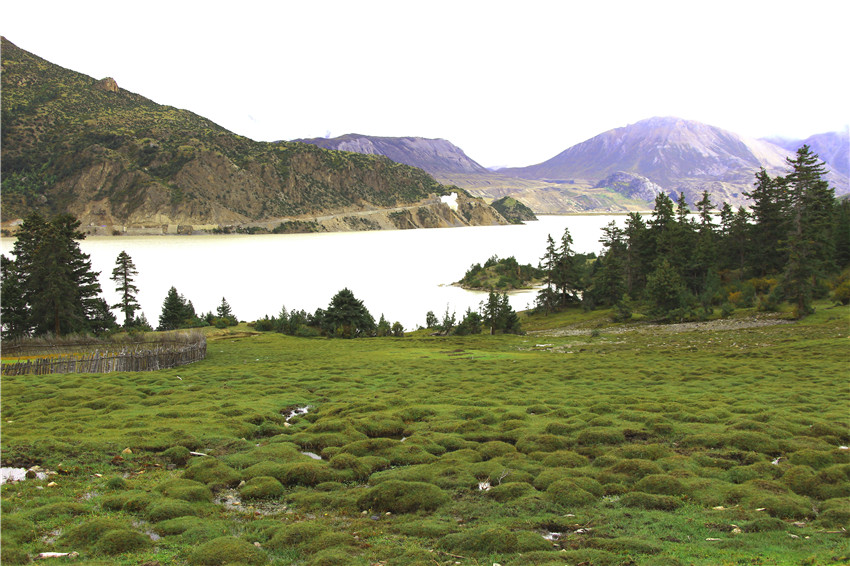 我一直走到村莊的盡頭,那里又是然烏湖的水域,湖邊有很多鵝卵石。我問了好些人才弄清“然烏”一詞的漢語的大意: “許多尸體堆積在一起”。據(jù)說這里曾是藏東南有名的水葬場,這也是它有名的另一個原因。歸去來兮,生死輪回,最后在這里仰望雪山草地,干干凈凈,一身清白,等候踏上去天堂的路。水葬是藏族古老習俗中三種殯葬方式中的一種,佛家講布施,天葬和水葬都含有布施的意義。藏民不吃魚也多是源于此。