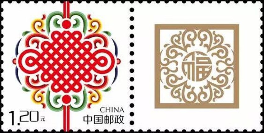 2002年5月10日,中國郵政發(fā)行《如意》個性化服務(wù)專用郵票一枚。主票圖案為如意柄端系著一個紅色“中國結(jié)”,附票有“祝?!倍郑?2003年3月3日,中國郵政發(fā)行《同心結(jié)》個性化服務(wù)專用郵票一枚。主票圖案為盤長結(jié)4邊編織有心型繩結(jié)的同心結(jié),附票為“祝福”二字;2006年9月25日,中國郵政發(fā)行《中華全國歸國華僑聯(lián)合會成立五十周年》紀(jì)念郵票一枚。圖案為阿拉伯?dāng)?shù)字“5”與中華全國歸國華僑聯(lián)合會圓形會徽組成數(shù)字“50”,象征全國僑聯(lián)五十周年,背景畫面為淡淡的粉紅色“中國結(jié)”。寓意歸國華僑與全國人民血肉相連,同心同德共同建設(shè)美好家園;2013年8月8日,中國郵政發(fā)行一枚《美好祝?!焚R卡專用郵票,圖案為象征喜慶的紅色“中國結(jié)”;2014年9月20日,中國郵政發(fā)行《中國夢(二)——民族振興》特種郵票,其中第四枚“民族團(tuán)結(jié)”,圖案中載歌載舞的各民族群眾上方有一個大紅的“中國結(jié)”,象征著各民族大團(tuán)結(jié)。