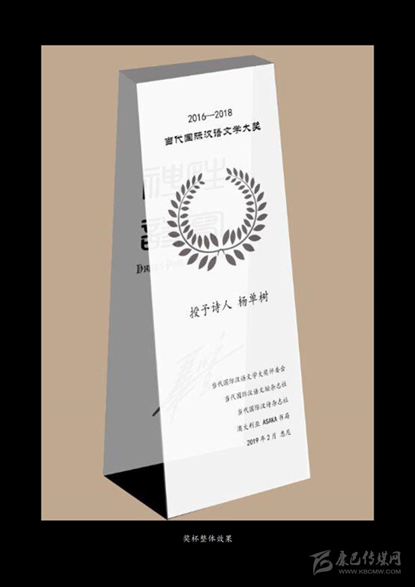 “當(dāng)代國際漢語文學(xué)大獎”獎杯。