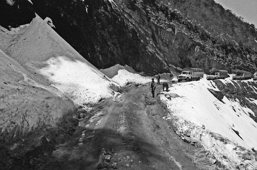 川藏公路翻越了整個橫斷山脈,穿過了14座高山,二郎山就是橫亙在川藏線上的第一座高山,是通往藏區(qū)的咽喉險關(guān),被稱為“天塹”,素有“千里川藏線,天塹二郎山”之說。夏天,滑坡,塌方,泥石流,飛石;冬季,冰雪路,桐油路,雪封山。每年總有好幾起車禍?zhǔn)鹿?。總之,司乘人員一提起二郎山,大有談虎色變,汗毛倒豎之感。冬季,為了保障行車安全,交警部門不但實行交通管制,還派專人在桐油路段撒鹽防止車輛打滑。