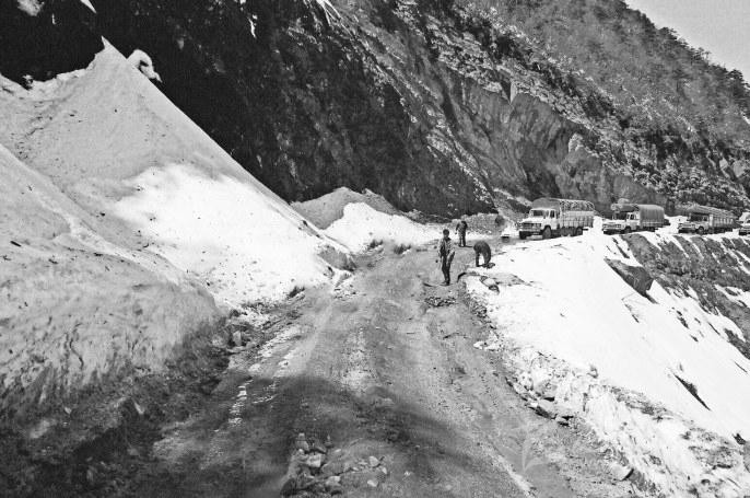 也就是在這一年,我們幾經(jīng)周折,終于聯(lián)系到了遠(yuǎn)在北京的翟新莉女士。當(dāng)年修筑二郞山公路時(shí),翟女士的父親翟壽亭時(shí)任162團(tuán)政委,既是指揮者,也是親歷者。聽過自我介紹,素未謀面、素昧平生的翟女士爽快答應(yīng),積極支持,不僅寄來《從豫皖蘇到康藏高原》一書,還發(fā)來了父親留下的一組珍貴照片。照片上,齊腰深的大雪讓人不寒而栗,四面透風(fēng)的工棚使人倍感覺艱辛。心懷敬仰的閱讀中,一座座大山撲面而來,二郞山、折多山、雀兒山上,戰(zhàn)天斗地的故事驚天地泣鬼神。