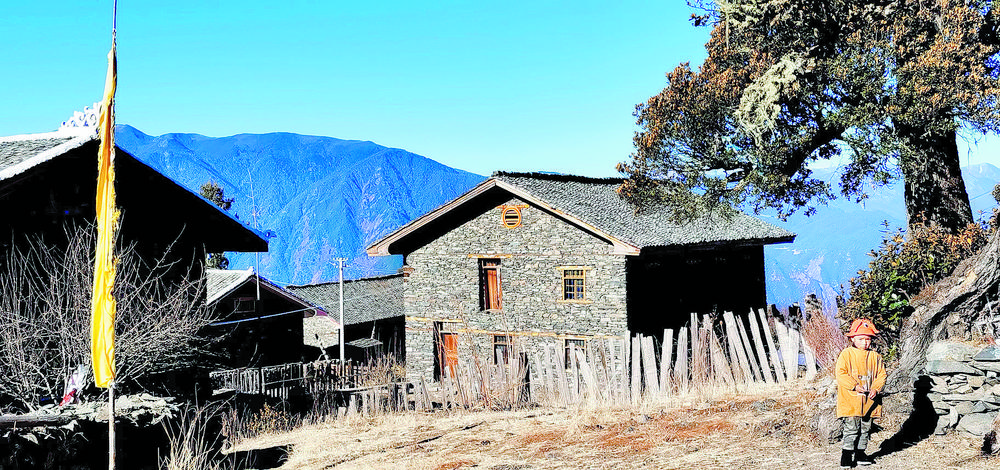 洛克所經(jīng)過的地方就是三巖龍鄉(xiāng)的猛董,這是一處鮮為人知的隱世天堂。猛董有“五絕”,即“山、湖、谷、寨、寺”,山是被當(dāng)?shù)厝诵欧顬樯裆降柠湹刎暩拢湹?,藏語為珍珠),湖是神山腳下的麥地措(珍珠湖),谷是雅礱江谷地的藍(lán)月山谷,寨是猛董“后花園”的普米寨子,寺是修建于明清時(shí)期的猛董古寺。