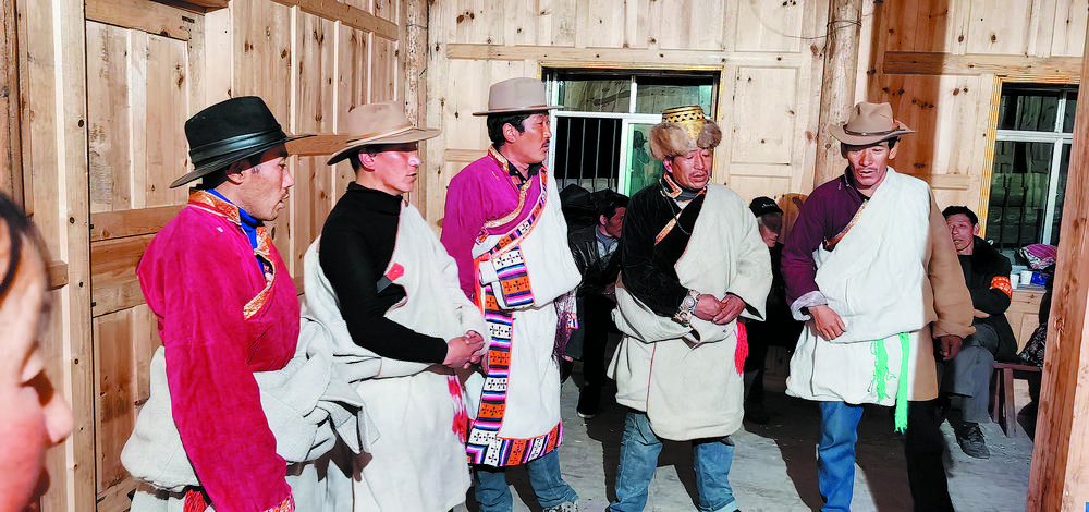 夜臨了,月低垂,整條山谷陷入了藍(lán)色的世界,近處是墨綠,遠(yuǎn)處是淡綠,雄渾的大山在綠的撫摸下也變得婀娜起來;古老寨子的火塘也燃起來了,勞作了一天的普米人聚在一起,跳起了原始氏族人群圍火而舞的傳統(tǒng)舞蹈,曲調(diào)悠揚(yáng)且古樸動(dòng)人。