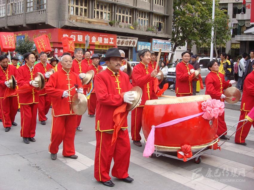 大年三十夜,山谷中的康定城廓鼓聲震天,“鬧山鼓”將過(guò)年的氣氛推向了高潮。當(dāng)年“鬧山鼓”打得最好的是一位人稱“韓八爺”的陜西漢子,后來(lái)“韓八爺”打不動(dòng)了,由另一家陜西戶縣來(lái)的姓徐的人家接替。徐家老父打不動(dòng)了又傳給了徐大哥。到徐大哥操鼓槌時(shí),參與打鼓的已不再全是陜西人了,康定熱愛(ài)這鼓聲的藏、漢、回族漢子也參與進(jìn)來(lái),成了多民族的鼓隊(duì)。這原本屬于陜西戶縣的“老陜鼓”,如今在戶縣卻打不全了。徐大哥健在時(shí)說(shuō),“鬧山鼓”鼓譜共有20多節(jié),那年他回戶縣探親,戶縣的鼓匠最多只能打一半的鼓譜,而在康定,全套的鼓譜卻被這支多民族的鼓隊(duì)流傳了下來(lái)。
