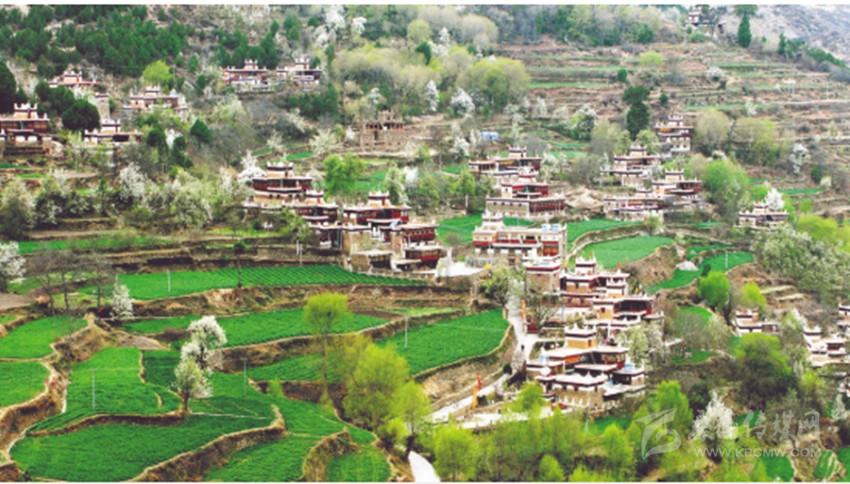 甲居,藏語(yǔ)是“百戶人家”的意思。實(shí)際上甲居藏寨分為一村、二村、三村共150余戶人家,700多人口,甲居藏寨所在地形如一個(gè)面積為5平方公里的大盆,大盆斜倚卡帕瑪群山,一棟棟外形別致、色彩鮮艷的典型嘉絨藏式民居錯(cuò)落有致地從山腳一直排到半山。甲居人一代一代修造的梯田點(diǎn)綴民居之間,顯示出別具一格的田園韻味。茂密的柏樹掩映著民居,這些別致的民居不象故宮規(guī)模對(duì)稱,也不象蘇州園林隨興布局。碉樓式的民居雖無(wú)嚴(yán)格的統(tǒng)一規(guī)劃,但卻似乎不是隨意而建,每棟民居都有它獨(dú)特?fù)屟鄣娘L(fēng)格。正是這些別具一格的座座碉樓民居,構(gòu)成甲居藏寨的精妙絕倫。民居外所立的經(jīng)幡以及房頂隨風(fēng)飄動(dòng)的瑪尼旗,又為恬靜如詩(shī)的鄉(xiāng)土民居增添了無(wú)限神秘的色彩。祥云籠罩山頂,溪水潺潺環(huán)流,山腳滾滾河流,山水渾映,天水合一,筆者一行不由驚嘆,甲居藏寨 ,名符其實(shí)的人間仙境,世外桃源!先前道路險(xiǎn)峻留在心底的驚懼早已一掃而光,一行人激動(dòng)著迫不及待地?fù)渖碛诿啦粍偈盏南删持小?/p>