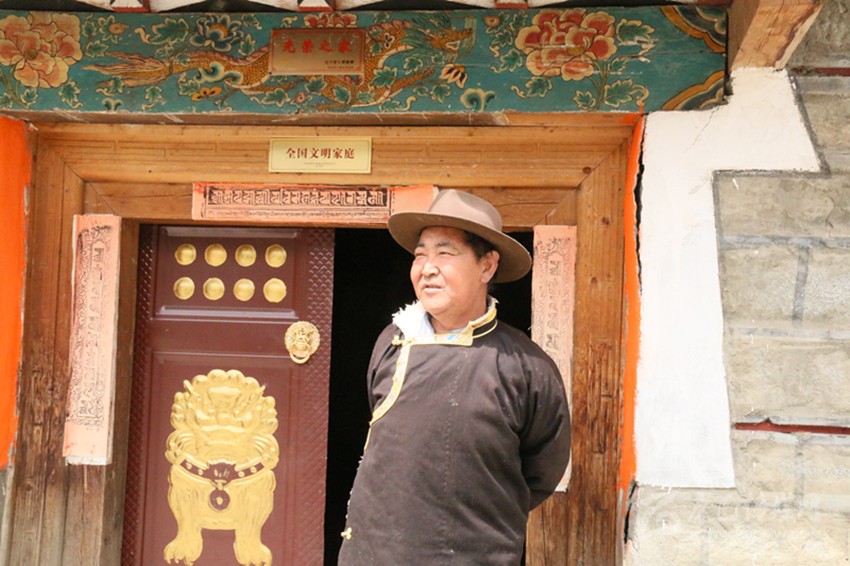 羅布扎西家門(mén)口的全國(guó)文明家庭牌匾格外引人注目。