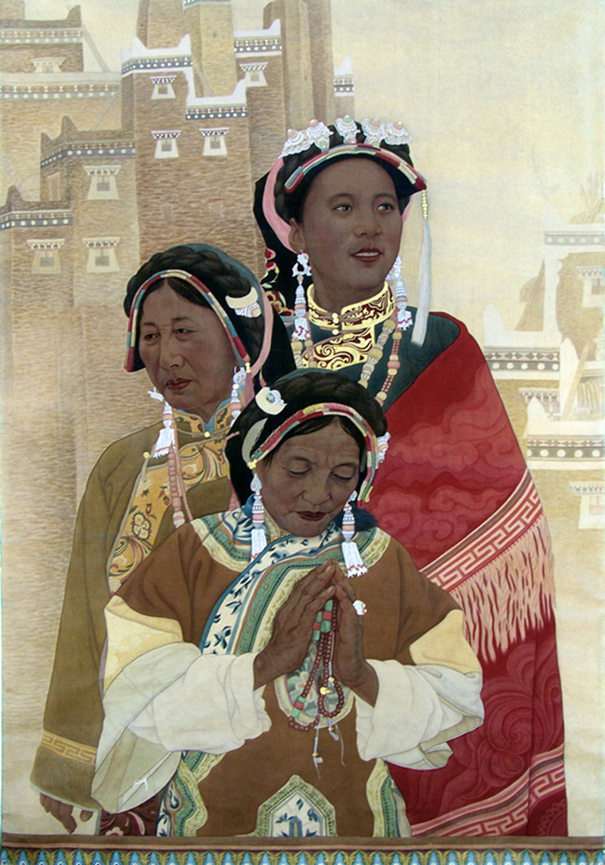 “2000年以后,甘孜州的畫家出現(xiàn)了斷層,創(chuàng)作進入了低迷期,我想更進一步提升自己的繪畫功底?!苯饾苫ㄕf,2005年,經(jīng)過一年的緊張備考,次年她如愿以償考上了中國的最高美術(shù)殿堂——中央美術(shù)學院?!霸谥醒朊涝旱膬赡?,美術(shù)老師不斷給我們加課,我連天安門都沒有去過,遺憾的是我沒有英語等級,只拿到了學歷證書?!?/span>