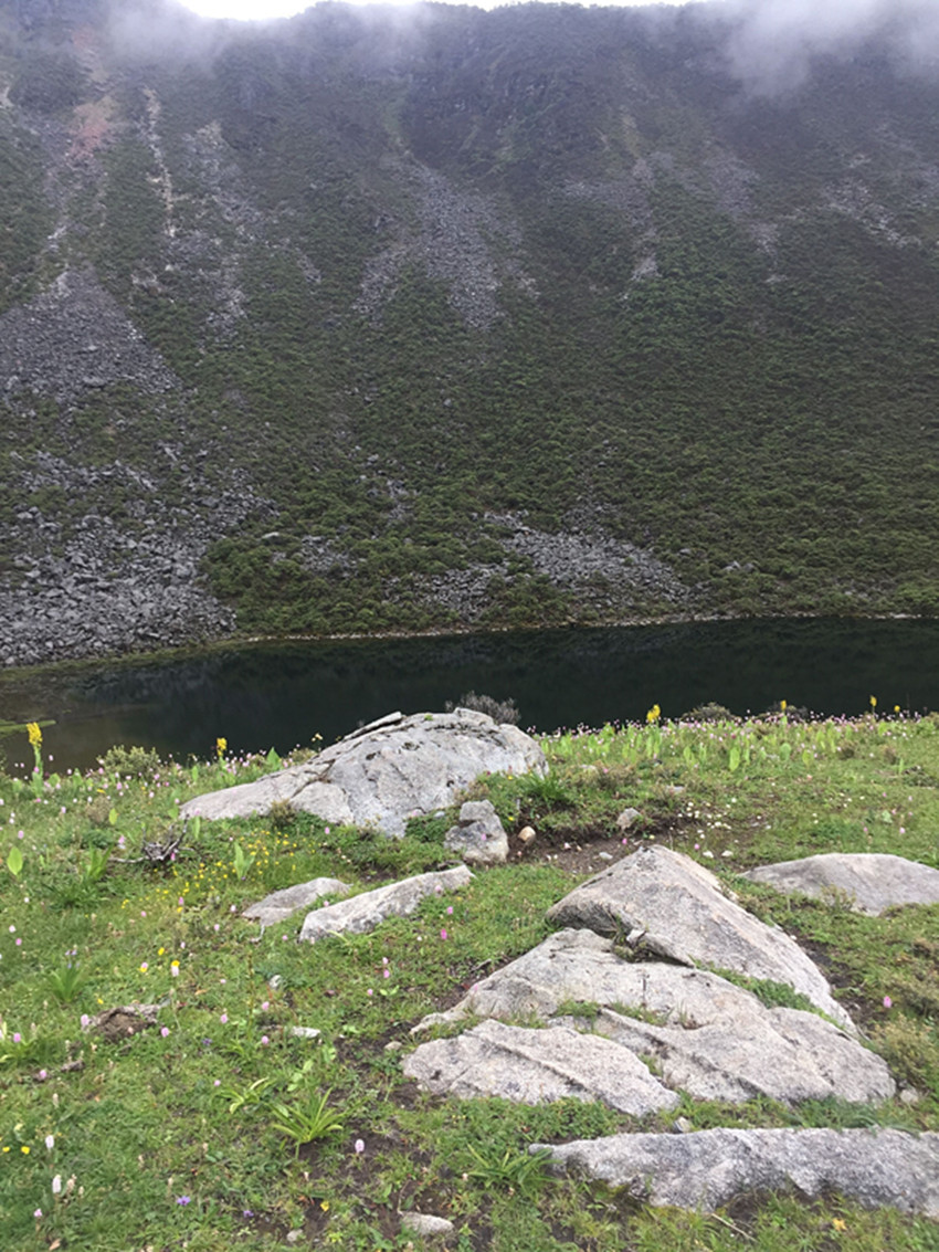 銀珠聽到南吉即興唱出的山歌那么溫婉動(dòng)人,被風(fēng)吹冷的眼睛里落下了兩顆溫?zé)岬臏I水。她掩飾住自己的情緒,從粗重的呼吸里回答:“好?。 蹦霞牭姐y珠對(duì)唱,臉上綻放出笑容。她們的腳底不再發(fā)出響聲的時(shí)候,就是已經(jīng)走到了兩座大山之間的那片山谷。一層淺雪里露著青草、一叢叢開紫花的小杜鵑,還有密密匝匝的矮腳柳。銀珠站在一塊土包上,她打開雙臂,一臉明媚地對(duì)著南吉說:“阿姐,這片沒有積雪的山谷就是我送給你的禮物?!?/span>