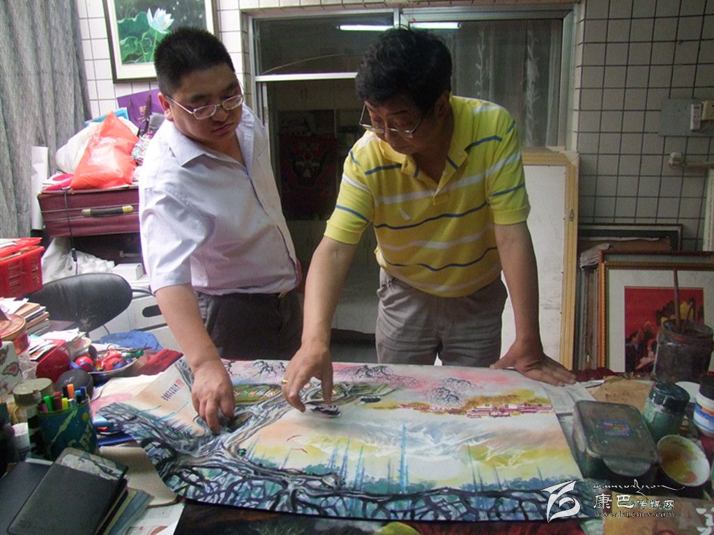 得知記者在《成都日?qǐng)?bào)》學(xué)習(xí),文光裕先生便盛情相邀記者去他家里做客。7月9日,記者到雙流采訪了文光裕先生。文光裕先生詼諧幽默,學(xué)說逗唱、琴棋書畫樣樣都懂。他具有平和的心態(tài),所以看起來特別年輕,記者見到他的時(shí)候,很難把古稀老人與他聯(lián)系起來。人未見,笑聲先到,文光裕先生爽朗的笑聲感染了記者。他正在創(chuàng)作新舊康定對(duì)比繪畫作品。雄奇險(xiǎn)峻的郭達(dá)山下,湍急的河水,密密麻麻的民房,這就是他記憶中上個(gè)世紀(jì)50年代的康定,雖然長(zhǎng)期居住在內(nèi)地,但文光裕先生思鄉(xiāng)心切,用繪畫的形式來寄托對(duì)家鄉(xiāng)的思念。