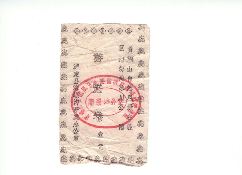 我有心收藏海螺溝旅游開發(fā)建設(shè)三十年來不同時(shí)期、品相各異的門卷、門票數(shù)枚。門卷、門票是游客進(jìn)入景區(qū)的憑證,也是景區(qū)的“臉面”。在我收藏的門卷、門票中有一枚海螺溝景區(qū)第一代門卷。構(gòu)圖簡(jiǎn)單,白底黑字的第一代門卷,雖然在歲月中褪去了鮮色,但在方寸之間卻承載著海螺溝景區(qū)建設(shè)最初的時(shí)光和開發(fā)建設(shè)者的記憶,更是瀘定縣三十年前發(fā)展旅游的歷史見證。一晃三十年光陰,至今我對(duì)海螺溝景區(qū)第一代門卷的來歷,還記憶猶新。