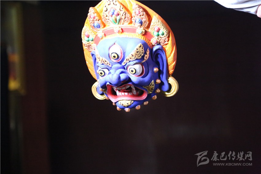 待面具自然風(fēng)干后,用礦物質(zhì)、植物的根等制作的自然顏料進(jìn)行著色,自然顏料有不變色、耐光的特性,通過一淡、二濃、三淡的上色過程使面具涂色均勻,待顏料曬干后對(duì)面具進(jìn)行磨光,去除雜物,再對(duì)面具進(jìn)行裝藏念經(jīng),如此,一個(gè)藥泥面具制作完成。做好的藥泥面具有濃郁的藥材香氣,并有著驅(qū)蚊、殺菌、抗病毒、清潔空氣、解除疲勞等功效。