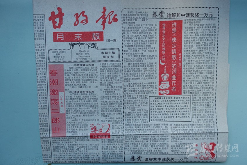 《甘孜報》當年刊載尋找《康定情歌》作者一文的第一期(月末版)報紙。