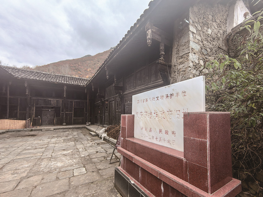 西出紅色瀘定名城數(shù)公里,過瀘定電站庫區(qū)大橋盤山而上20余公里,眼前豁然開朗,雪山巍峨,遍山彩林,古色古香的古寨掩映在青山綠水間,恍若世外桃源般的美景,便是云上嵐安。