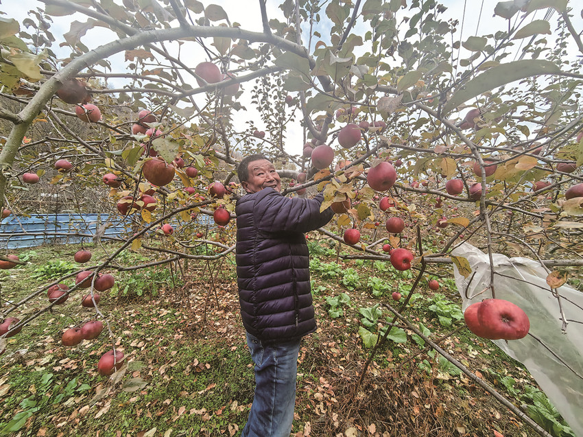嵐安公路修通以后,王沛林準(zhǔn)備發(fā)展農(nóng)家樂。想著良好的生態(tài)才能吸引游客,他就種下4畝高山糖心紅富士蘋果。到今年,蘋果已成為他家的主要收入來源。除了招待游客,年收入有十多萬元。