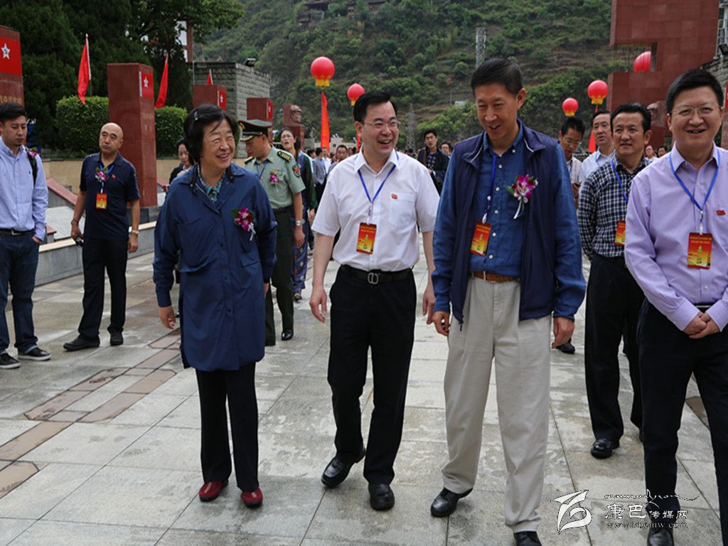 賀龍將軍之女賀曉明、楊成武將軍之子楊東明與州委書記胡昌升步入紀(jì)念大會(huì)現(xiàn)場(chǎng)。
