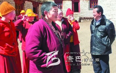 在雅江縣委、縣人大常委會(huì)主要領(lǐng)導(dǎo)及統(tǒng)戰(zhàn)、宗教部門的陪同下,李康來到距縣城90多公里的雅江縣紅龍鄉(xiāng)158k覺姆寺,同寺管會(huì)成員和部分僧尼進(jìn)行座談。他詳細(xì)了解寺廟的基本情況,仔細(xì)詢問僧尼的生產(chǎn)生活和寺廟佛事活動(dòng)開展情況,認(rèn)真傾聽僧尼的反映和訴求,對(duì)僧尼提出的困難和問題詳細(xì)記錄,認(rèn)真答復(fù),耐心細(xì)致地講解宣傳黨的民族宗教和惠寺惠僧政策。座談會(huì)上,李康主任簡短的開場白很快拉近了大家的距離,他說,這次專門到寺廟的目的就是看望大家,建立聯(lián)系,了解情況,收集問題,希望大家暢所欲言,互相溝通,加強(qiáng)交流,增進(jìn)了解,共同推進(jìn)寺廟的健康有序發(fā)展。當(dāng)他了解到該寺的水、電問題在縣委、政府的關(guān)心重視下,今年即將得到解決時(shí),他說,州、縣黨委、政府歷來十分關(guān)心寺廟的基礎(chǔ)設(shè)施建設(shè)和廣大僧尼的生產(chǎn)生活、健康醫(yī)療等問題,寺廟的水電、道路、通信等基礎(chǔ)設(shè)施始終得到了黨委、政府的關(guān)心支持,僧尼的醫(yī)保、養(yǎng)老和最低生活保障等生活保障措施正在全州寺廟全面覆蓋。對(duì)寺廟的其他困難和問題,州、縣將積極協(xié)調(diào),盡快解決。他強(qiáng)調(diào)指出,158k覺姆寺近年來通過縣委、政府綜合施策,強(qiáng)化教育,規(guī)范管理,寺廟整體情況良好,步入了依法管理的良性軌道。他講到,我們黨的民族宗教政策是長期的、一貫的,寺廟作為基本社會(huì)單元,僧尼作為普通公民和基本群眾,要自覺接受當(dāng)?shù)攸h委、政府依法管理,維護(hù)祖國統(tǒng)一、民族團(tuán)結(jié)和法制尊嚴(yán),推動(dòng)宗教與社會(huì)主義社會(huì)相適應(yīng),與現(xiàn)代文明進(jìn)程相協(xié)調(diào),積極投入全州發(fā)展中來,共同建設(shè)好我們的和諧幸福家園。任何寺廟只要服從當(dāng)?shù)攸h委、政府的管理,認(rèn)真貫徹落實(shí)好藏傳佛教的各項(xiàng)管理規(guī)定,真正發(fā)揮好宗教的正面積極作用,寺廟才會(huì)得到黨委、政府更多的關(guān)心支持,才會(huì)得到更好的健康發(fā)展。他希望158k覺姆寺要依法加強(qiáng)宗教事務(wù)的管理,深入貫徹落實(shí)《甘孜州藏傳佛教事務(wù)條例實(shí)施細(xì)則》,促進(jìn)依法治寺、規(guī)范管寺,為維護(hù)正常宗教秩序、服務(wù)經(jīng)濟(jì)社會(huì)發(fā)展、促進(jìn)社會(huì)和諧穩(wěn)定做出積極貢獻(xiàn)。